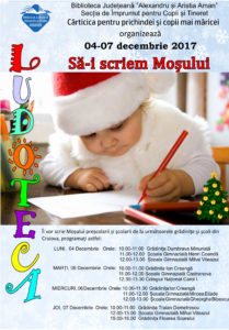 Planificată pentru intervalul 4-7 decembrie 2017, acțiunea intitulată “Să-i scriem Moșului” constă în realizarea unui număr de câteva sute de scrisori adresate lui Moș Crăciun.