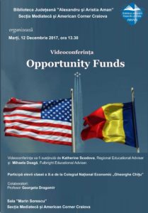 Biblioteca Județeană Alexandru și Aristia Aman organizează marți, 12 decembrie, începând cu ora 13.30, videoconferința cu tema: “Opportunity Funds”.